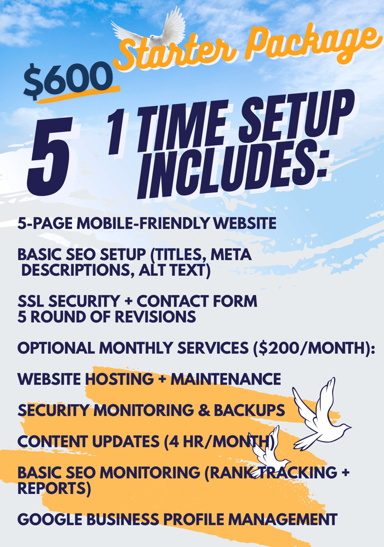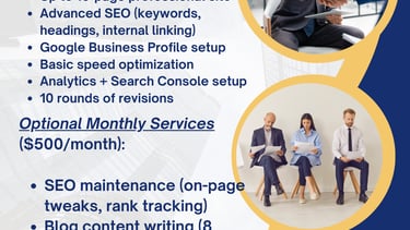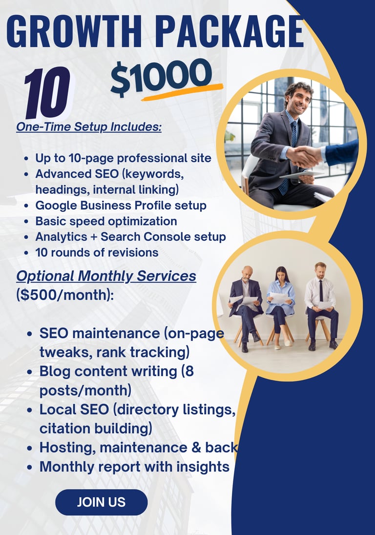 We provide professional web design and SEO services tailored to help businesses grow online. From building mobile-friendly websites to implementing advanced local SEO strategies, our goal is to ensure your brand ranks higher on Google and stands out in your market. Whether you need a simple business website, a fully optimized local SEO setup, or ongoing monthly digital marketing support, our services are designed to maximize your online presence and generate long-term results.